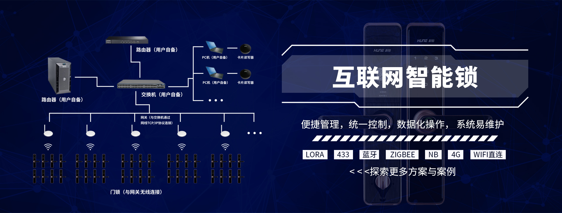 - 在數(shù)字高速發(fā)展的趨勢下,科裕31年堅持創(chuàng)新發(fā)展,運用物聯(lián)網(wǎng)技術推出聯(lián)網(wǎng)智能門鎖系統(tǒng),支持、LoRa、4G、NB、藍牙、WIFI、433等多種智能鎖聯(lián)網(wǎng)方案,實現(xiàn)了從酒店鎖到指紋鎖,到人臉識別鎖,再到聯(lián)網(wǎng)智能鎖的飛躍,以及智慧園區(qū)、智慧酒店、智慧公寓、智慧家居等各個場景解決方案。
